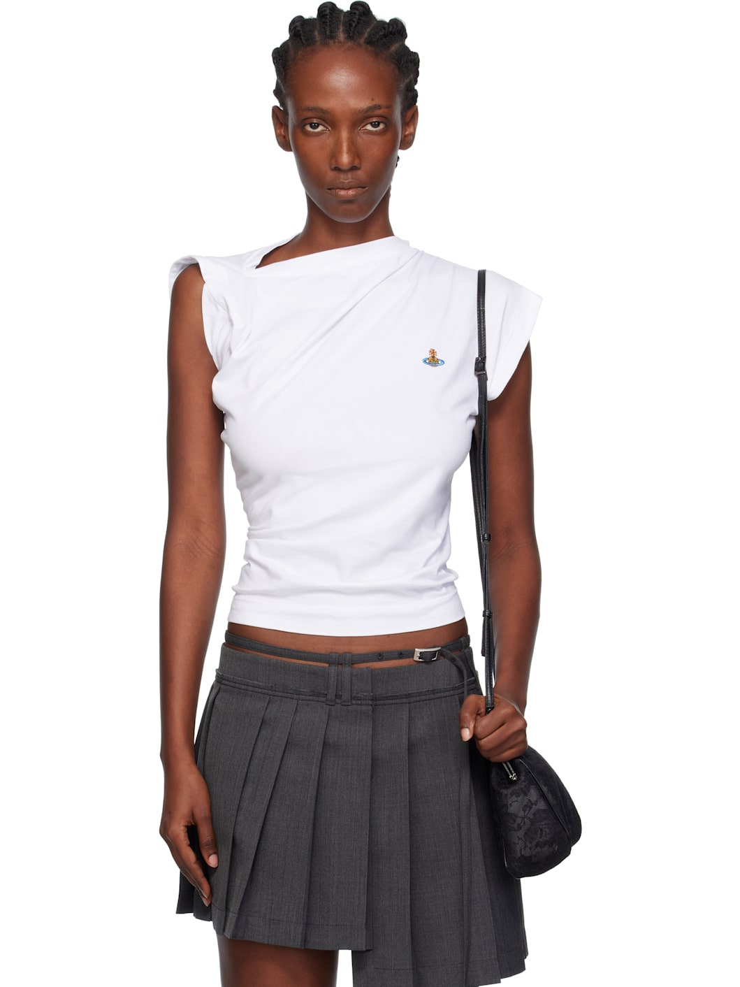 Organic cotton jersey T-shirt. · Asymmetrical construction · Draping throughout · Rib-knit crewneck · Embroidered logo at chest Supplier color: White 100% organic cotton. Made in Tunisia 252314F110017