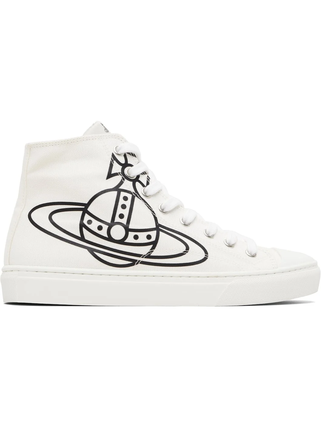 High-top cotton canvas sneakers. · Rubber cap toe · Lace-up closure · Logo patch at tongue · Logo printed at outer side · Twill lining · Treaded rubber sole Supplier color: White Upper: textile. Sole: rubber. Made in Portugal 252314M236003