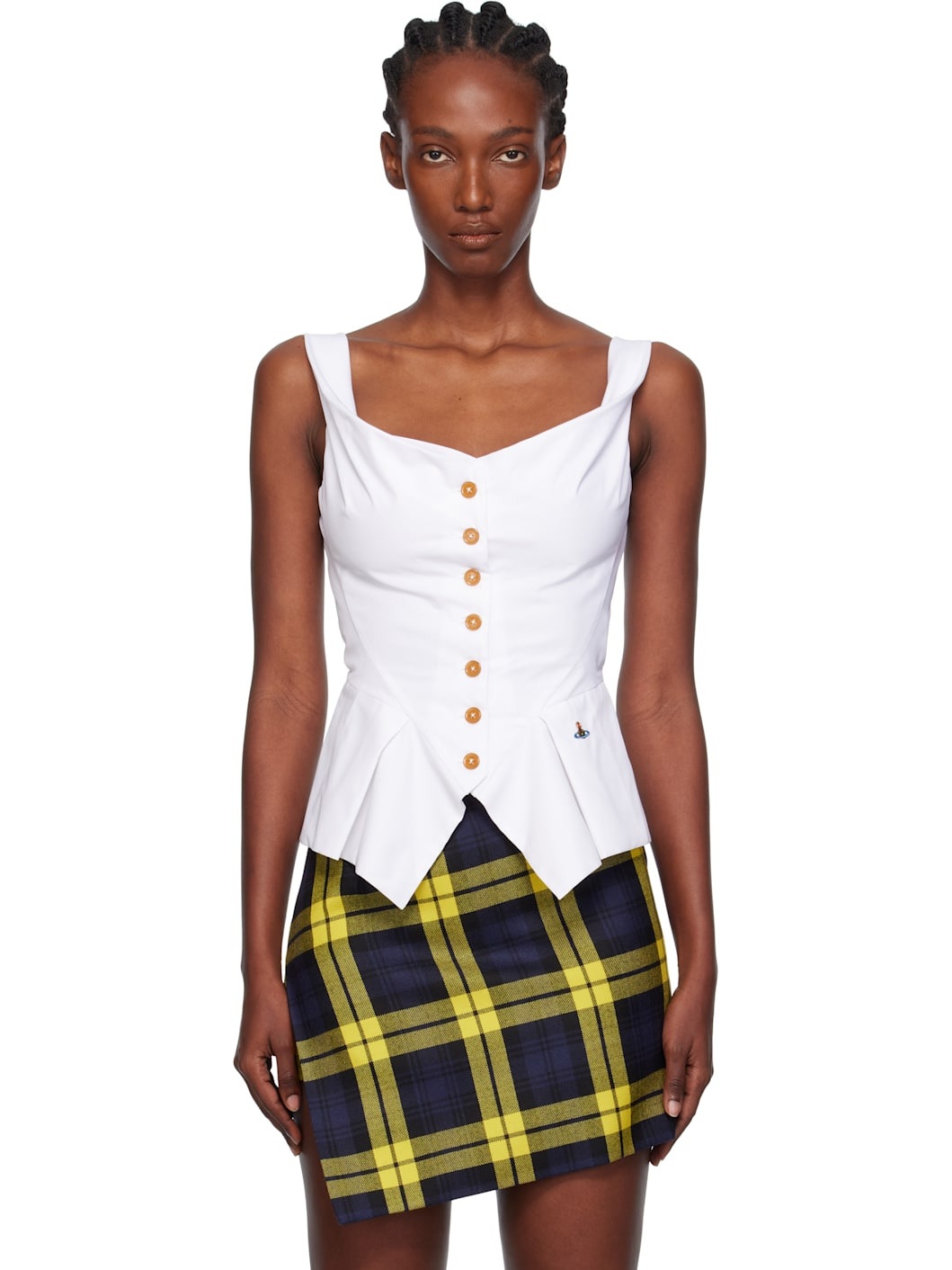 Regenerative cotton poplin top. · Cowl neck · Button closure · Darts at front · Welt pockets · Embroidered logo at front · Pleats at peplum hem Supplier color: White 100% regenerative cotton. Made in Italy 252314F111005