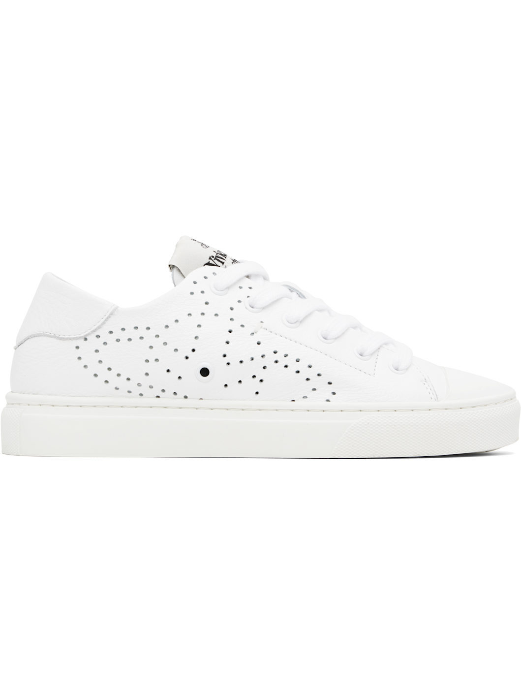 Low-top grained leather sneakers. · Rubber cap toe · Lace-up closure · Logo patch at tongue · Perforated logo at outer side · Eyelet at outer side · Grained leather lining · Treaded rubber sole Supplier color: White Upper: leather. Sole: rubber. Made in Portugal 252314F128000