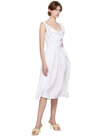Regenerated cotton poplin dress. Draping throughout. · Cowl neck · Logo embroidered at front · Gathering and pleats at waist · Concealed zip closure at back Supplier color: White 100% regenerated cotton. Made in Italy 251314F054013