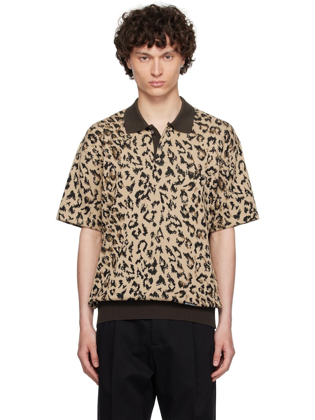 Knit cotton polo. Jacquard leopard pattern throughout. · Rib-knit spread collar and hem · Two-button placket · Logo embroidered at chest · Logo patch at front hem Supplier color: Beige 100% cotton. Made in Japan 252948M212000