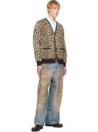 Knit cotton cardigan. Jacquard leopard pattern throughout. · Y-neck · Button closure · Welt pockets · Logo patch at front · Rib-knit hem and cuffs Supplier color: Beige 100% cotton. Made in Japan 252948M200000