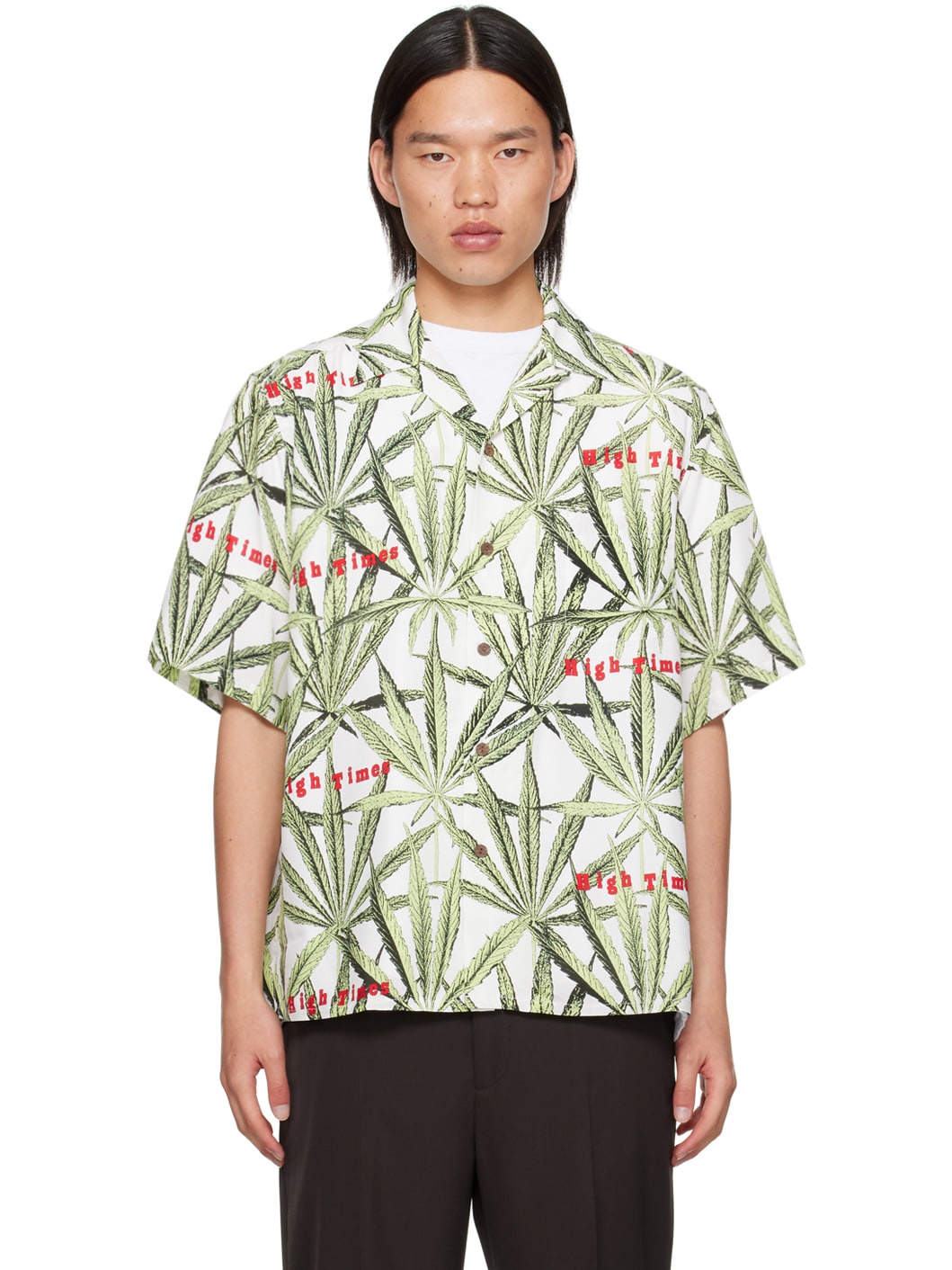 Plain-woven rayon shirt. Graphic pattern printed throughout. · Open spread collar · Button closure · Patch pocket · Pleats at back yoke Part of the Wacko Maria x High Times collaboration. Supplier color: White 100% rayon. Made in Japan 241948M192061