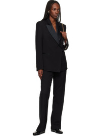 Virgin wool barathea trousers. · Sateen trim at waistband and outseams · Three-pocket styling · Zip fly · Creased legs · Knee-length satin lining Supplier color: Black Body: 100% virgin wool. Trim 1: 100% polyester. Trim 2: 100% cotton. Lining 1: 100% viscose. Made in Italy 252752F087001