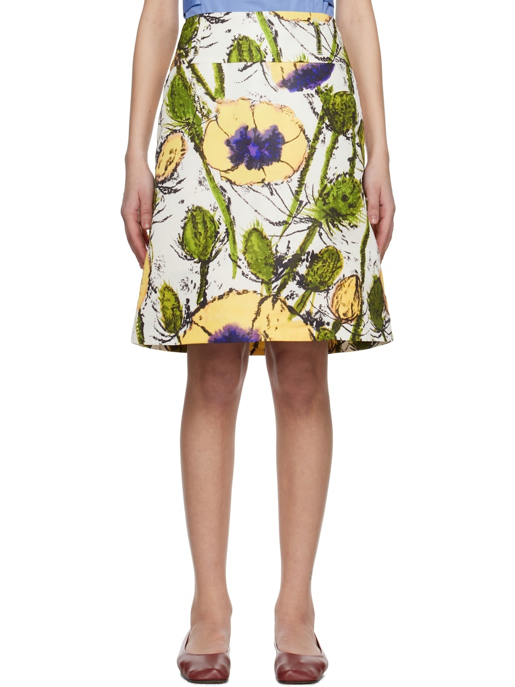 Polyester twill midi skirt. Floral pattern printed throughout. · Belt loops · Concealed zip closure at side · Full cupro satin lining Featuring artwork by Althea McNish. Supplier color: Poppy yellow Body: 100% polyester. Lining: 100% bemberg cupro. Made in Italy 251752F090001