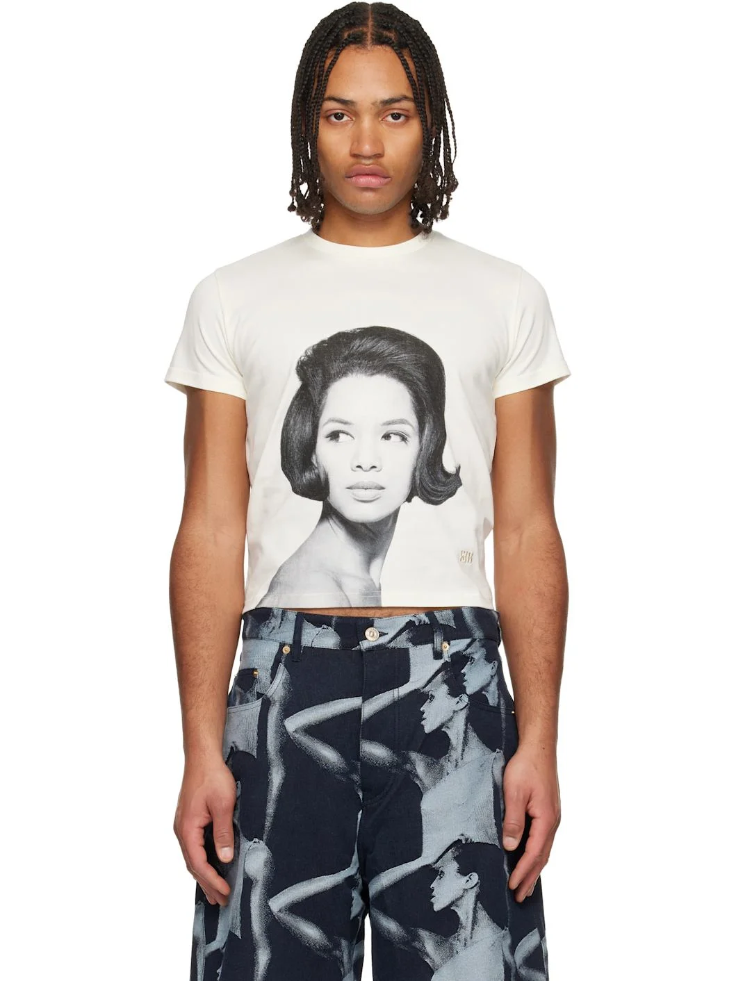 Organic cotton jersey T-shirt. · Rib-knit crewneck · Graphic printed at front · Logo embroidered at front · Cropped hem · Text flocked at back Part of the Wales Bonner x Theaster Gates collaboration. Supplier color: Ivory 100% organic cotton. Made in Portugal 252752M213004