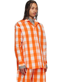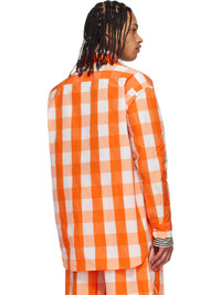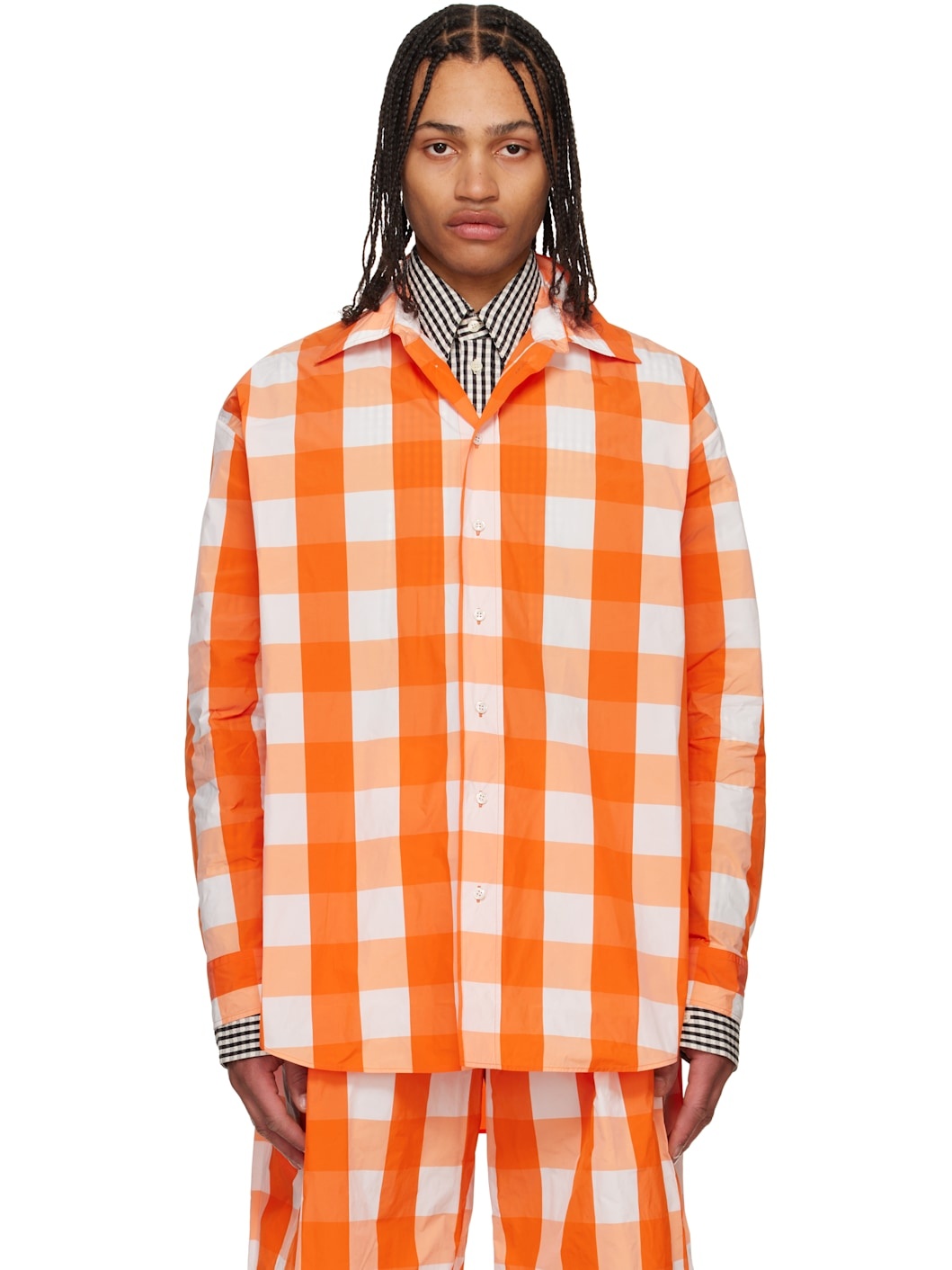 Polyester- and nylon-blend taffeta shirt. Check pattern throughout. · Spread collar · Button closure · Shirttail hem · Pleats at buttoned barrel cuffs · Mother-of-pearl hardware Supplier color: Orange 68% polyester, 32% polyamide. Made in Romania 251278M192011