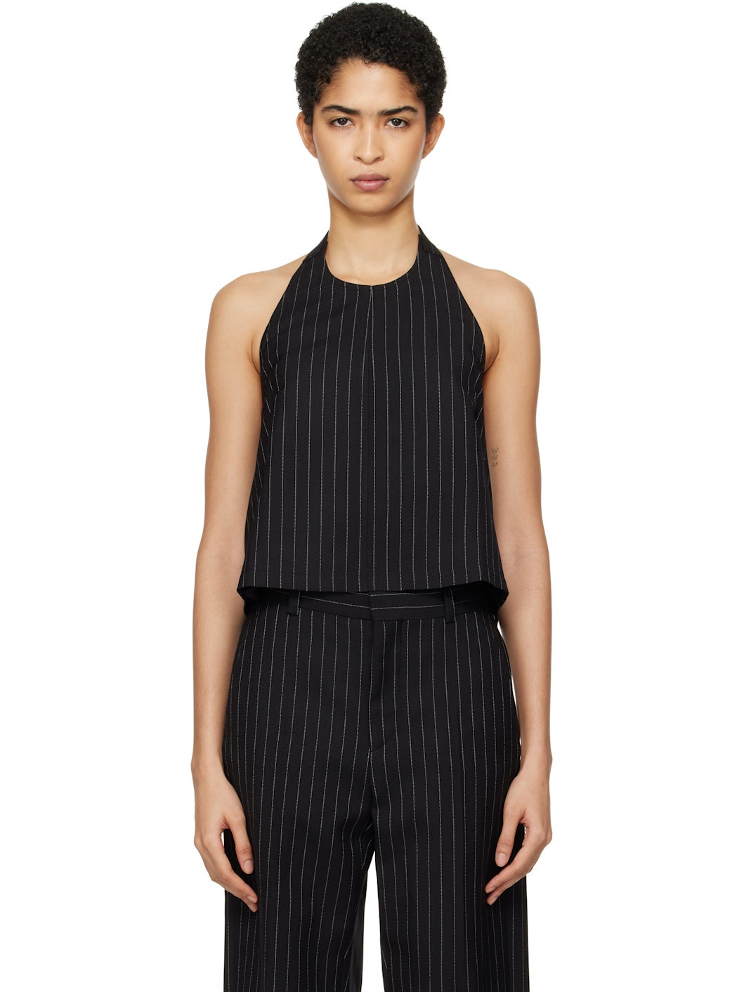 Wool twill top. Pinstripes throughout. · Pin-buckle halter strap at round neck · Central seam at front · Pin-buckle strap at open back · Full viscose twill lining Supplier color: Black pinstripe Body: 100% wool. Lining: 100% viscose. Made in Slovakia (Slovak Republic) 251277F111002