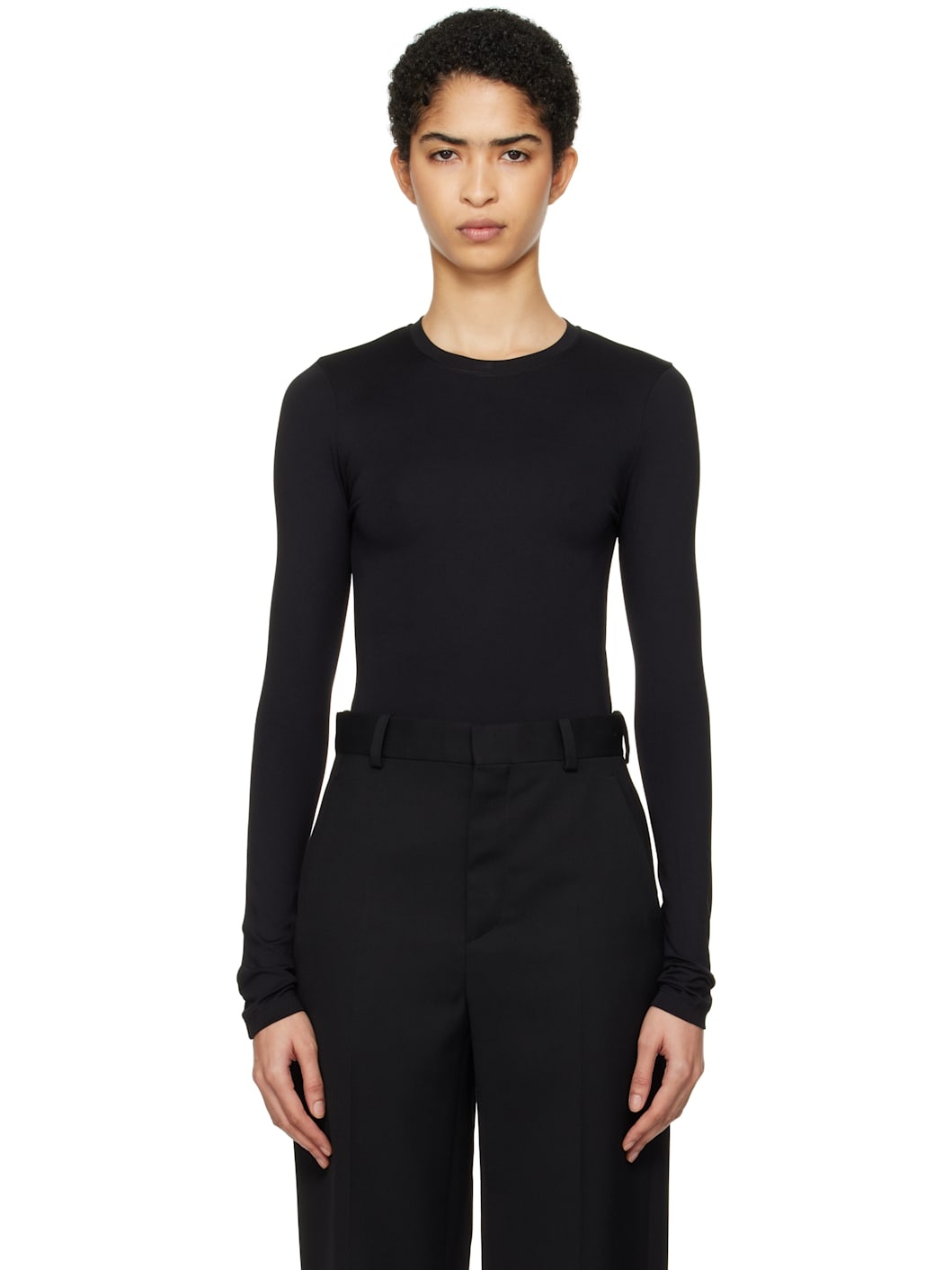 Stretch nylon jersey T-shirt. · Crewneck · Cropped hem Supplier color: Black 86% polyamide, 14% elastane. Made in Portugal 251277F110003