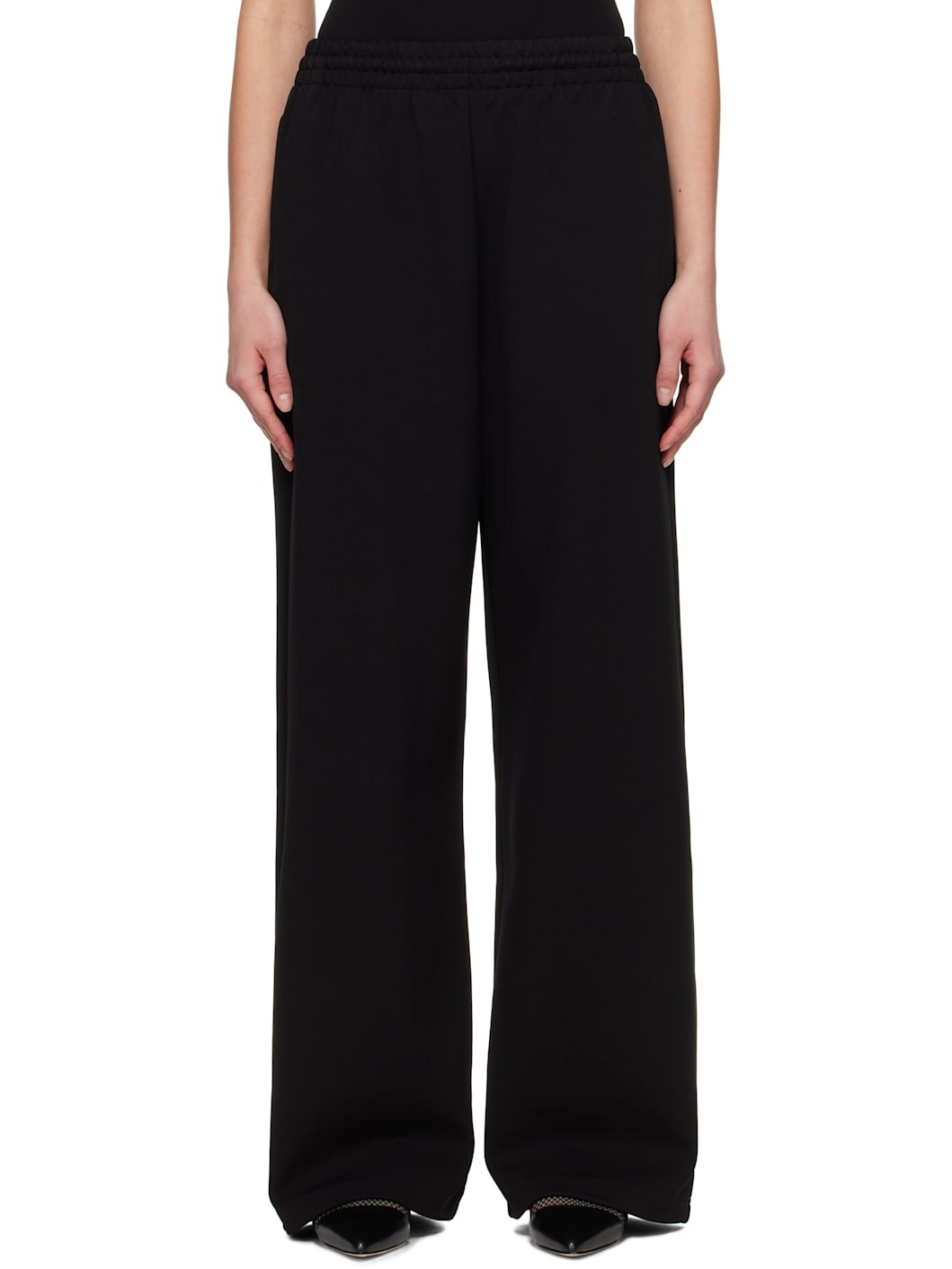 Wide-leg stretch viscose-blend jersey lounge pants. · Concealed drawstring at elasticized waist · Three-pocket styling Supplier color: Black Body: 60% viscose, 30% polyamide, 10% elastane. Lining: 100% cotton. Made in Portugal 251277F086001