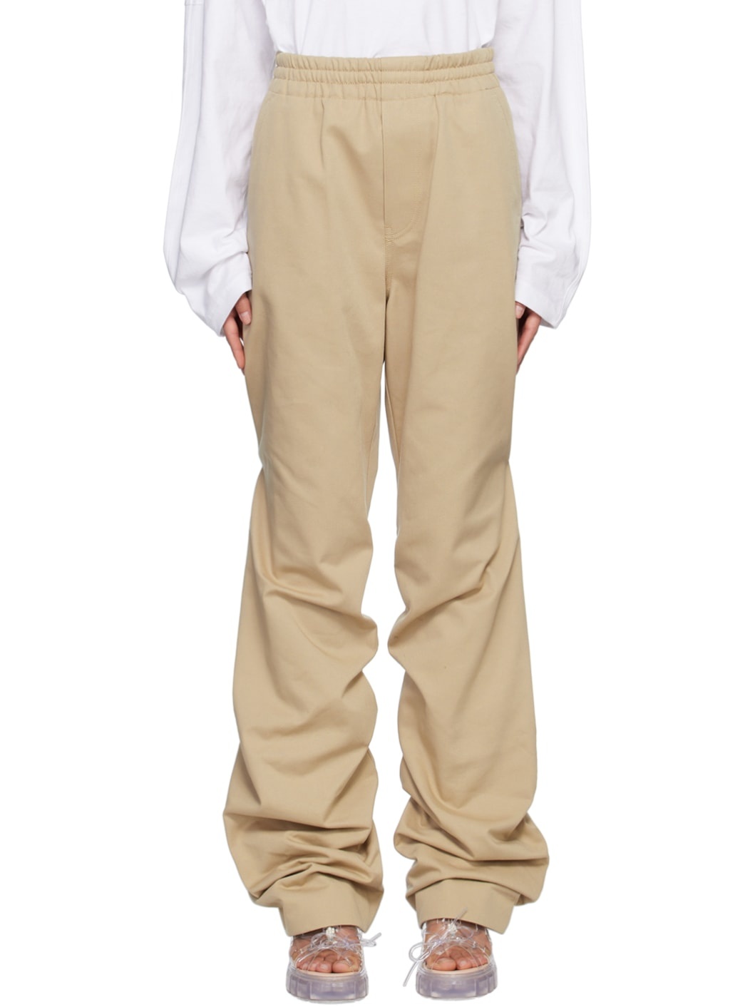 Beige Banded Shirring Trousers