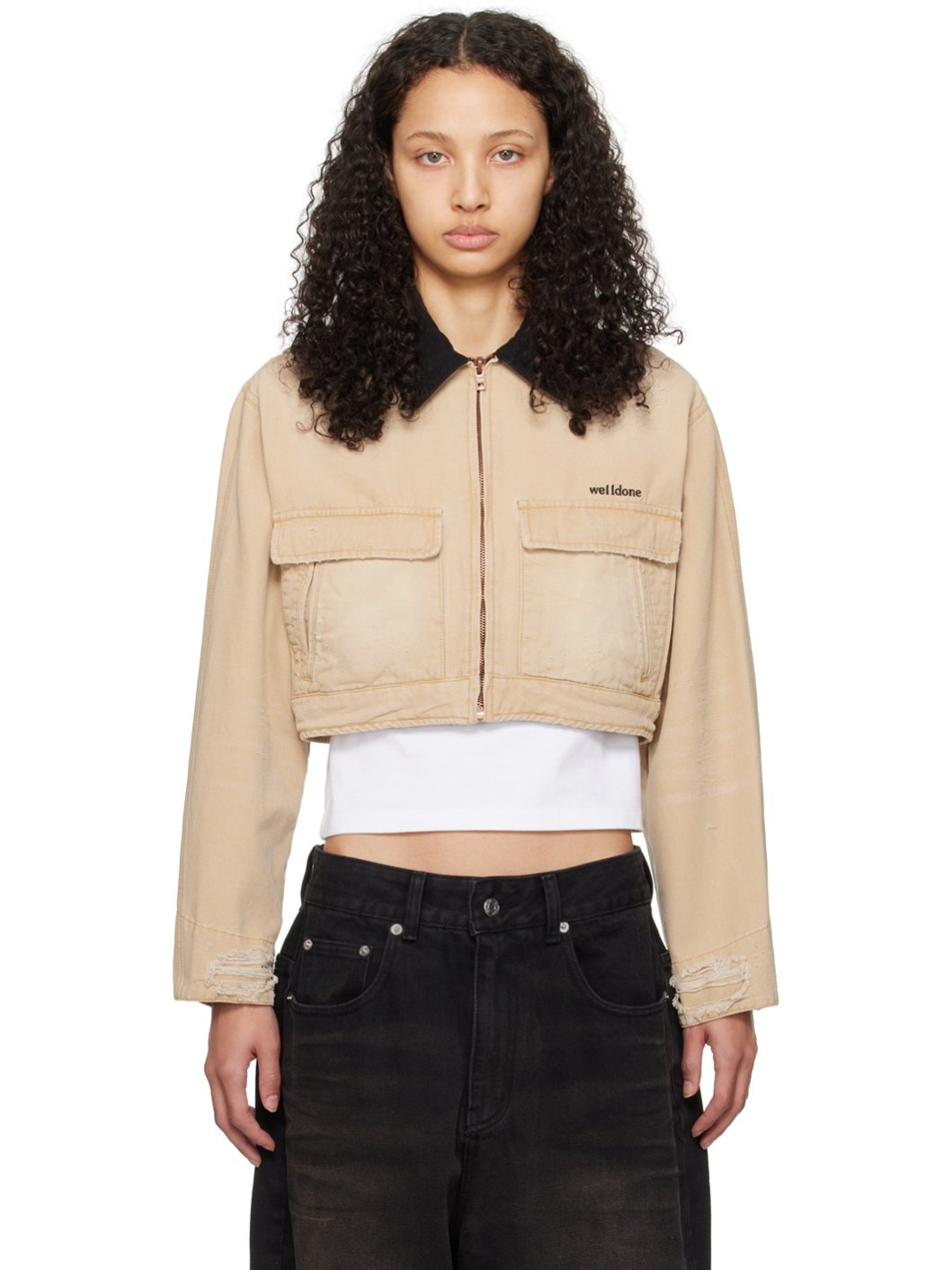 Cotton canvas jacket. Distressing throughout. · Spread collar · Zip closure · Logo embroidered at chest · Welt and flap pockets · Bungee-style drawstring at cropped hem · Unlined Supplier color: Beige 100% cotton. Made in South Korea 241327F060000
