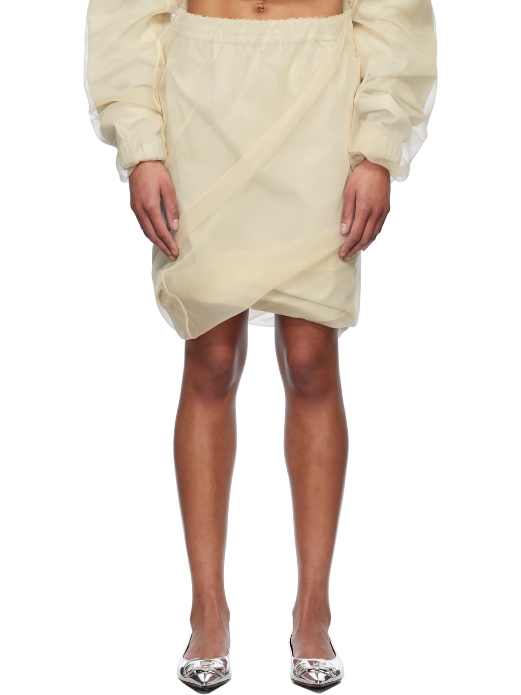 Polyester tulle and cotton-blend poplin mini skirt. Gathering throughout. · Layered construction · Elasticized waistband · Logo embroidered at front hem · Bubble hem Supplier color: Beige Body 1: 100% polyester. Body 2: 72% cotton, 28% nylon. Made in South Korea 251327F090001