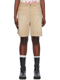 Cotton canvas shorts. Fading and whiskering throughout. · Paneled construction · Belt loops · Five-pocket styling · Zip-fly · Raw edge at cuffs · Hammer loop and welt pocket at back · Logo-engraved bronze-tone hardware Supplier color: Beige 100% cotton. Made in South Korea 241327F088004