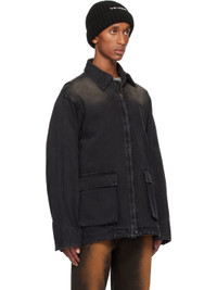 Washed non-stretch denim jacket. Fading throughout. · Paneled construction · Spread collar · Zip closure · Embroidered logo at front · Flap pockets · Press-stud barrel cuffs Supplier color: Black 72% cotton, 26% polyester, 2% regenerated cellulose fiber. Made in South Korea 242327M177014