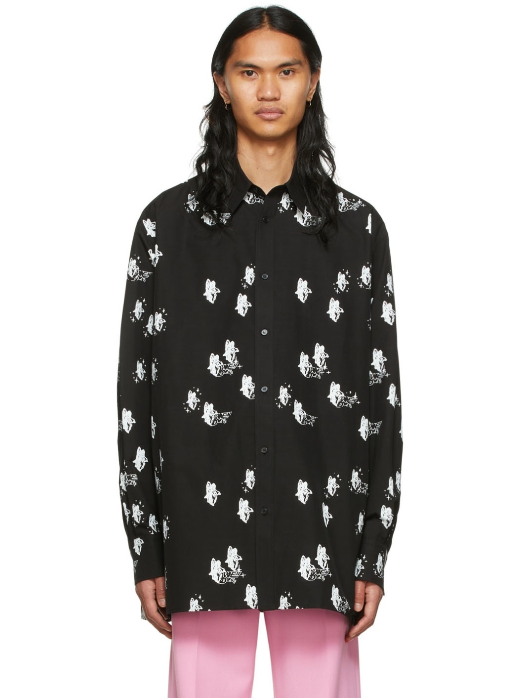 Cotton twill shirt. Logo graphic pattern throughout. · Spread collar · Button closure · Dropped shoulders · Two-button barrel cuffs Supplier color: Black 100% cotton. Made in South Korea 221327M192035