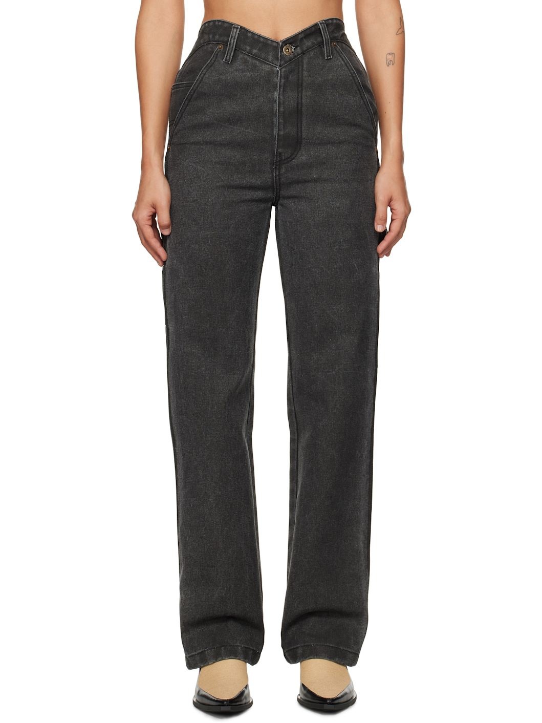 Polyester- and cotton-blend canvas trousers. Fading throughout. · Mid-rise · Belt loops at sweetheart waistband · Five-pocket styling · Zip-fly · Patch pockets and hammer loop at back · Logo-engraved brass-tone hardware Supplier color: Black 64% polyester, 33% cotton, 3% rayon. Made in South Korea 242327F087001