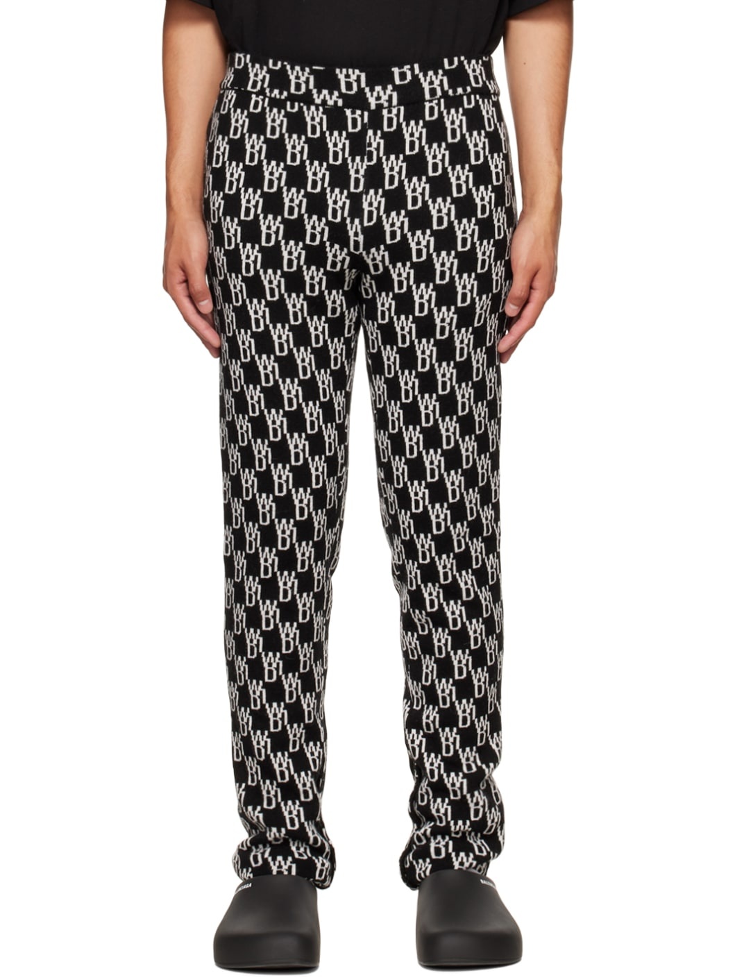 Knit wool and nylon-blend lounge pants. Jacquard logo pattern throughout. · Elasticized waistband · Button fastenings at vented inseams Supplier color: Black 60% wool, 35% nylon, 5% cashmere. Made in South Korea 222327M191000