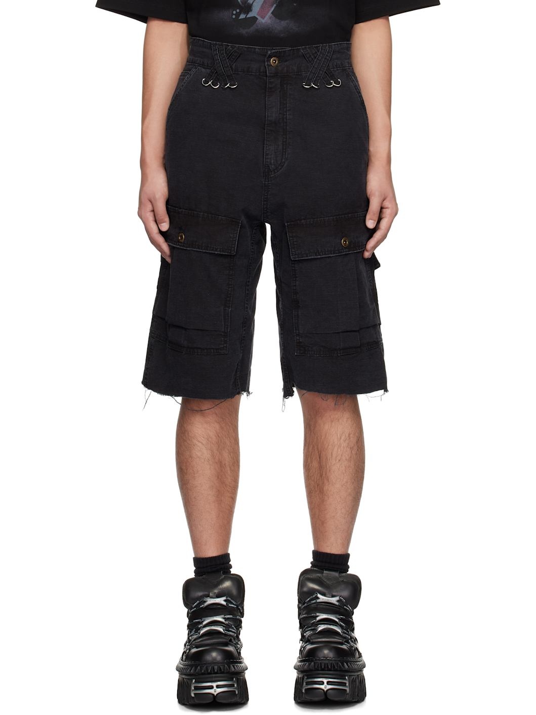 Cotton ripstop shorts. Subtle distressing and fading throughout. · Mid-rise · D-rings at belt loops · Four-pocket styling · Zip-fly · Cargo pockets at front and back · Raw edge at cuffs · Logo-engraved antiqued gold-tone hardware Supplier color: Black 100% cotton. Made in South Korea 251327M193003