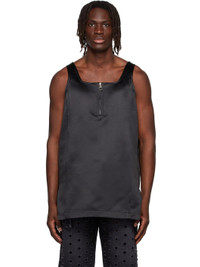 Polyester satin tank top. · Square neck · Half-zip closure · Gusset at vented side-seams Supplier color: Black 100% polyester. Made in South Korea 221327M214000