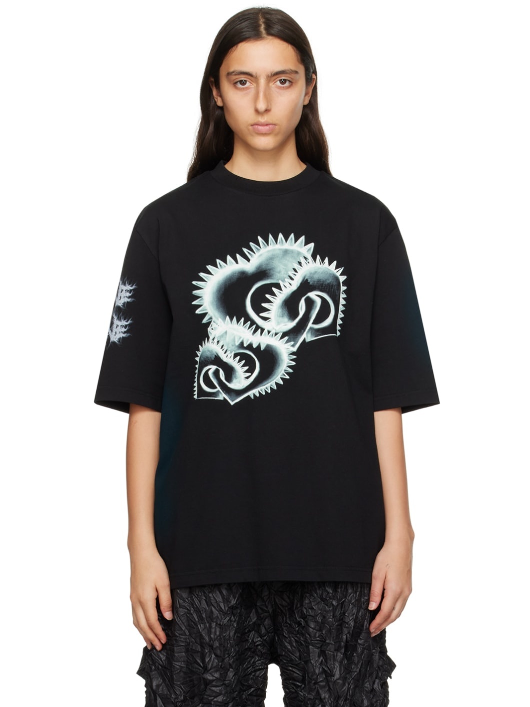 Cotton jersey T-shirt. · Rib knit crewneck · Graphic printed at front and sleeve · Dropped shoulders Supplier color: Black 100% cotton. Made in South Korea 232327F110051