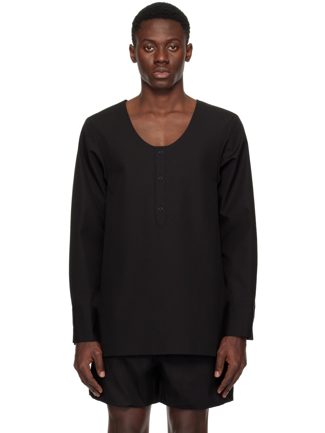 Cotton poplin shirt. · Scoop neck · Three-button placket · Vented side seams · Single-button barrel cuffs Supplier color: Black Body: 100% cotton. Lining: 100% cotton. Made in South Korea 241327M211000
