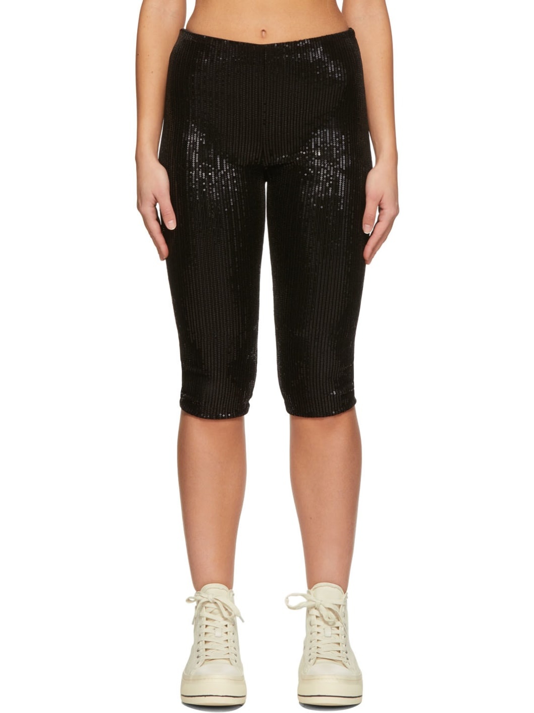 Polyester jersey shorts. Sequins throughout. · Zip closure at elasticized waistband · Nylon jersey lining Supplier color: Black Body: 100% polyester. Lining: 80% nylon, 20% polyurethane. Made in South Korea 221327F088002