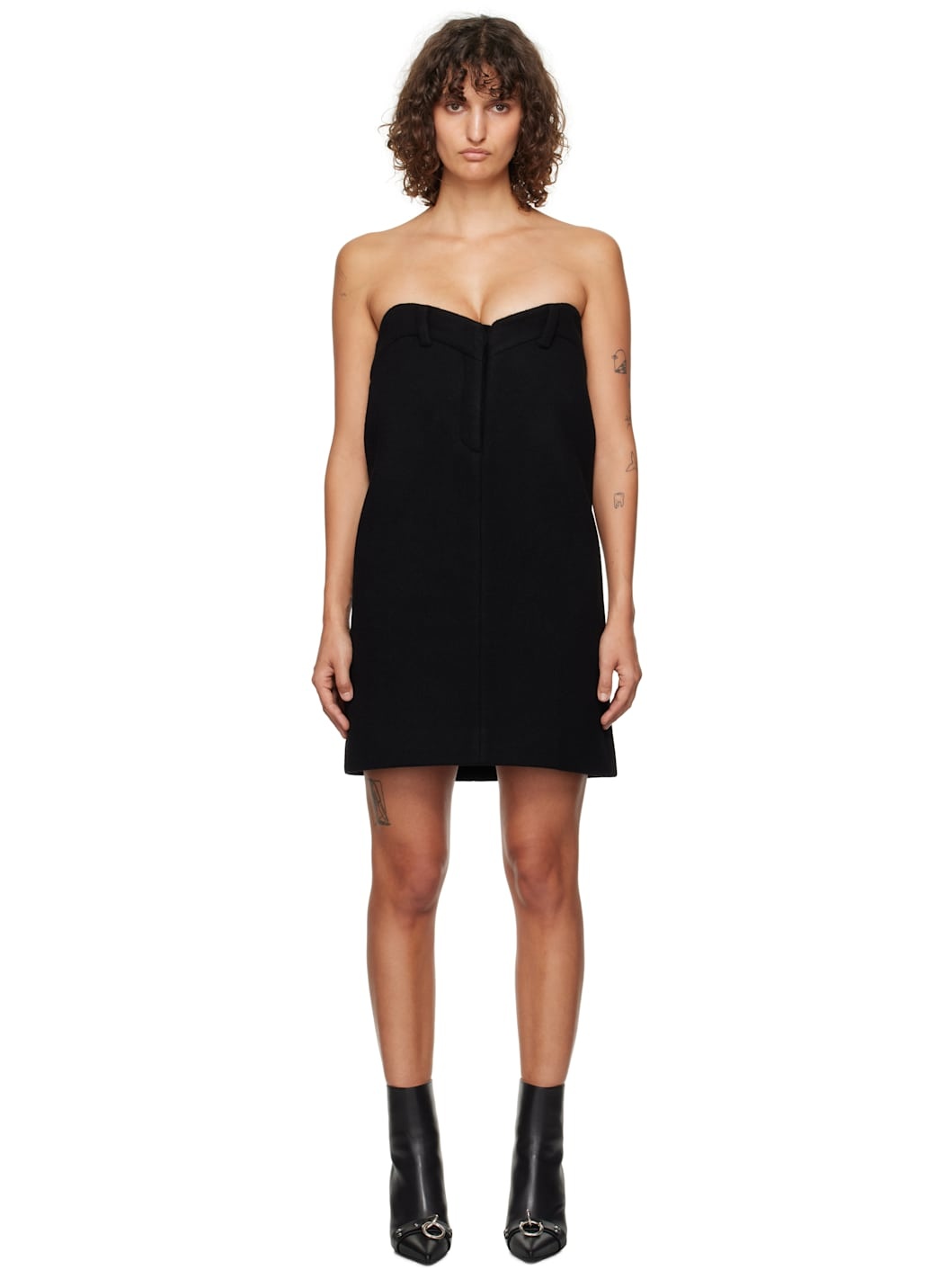 Wool-blend melton minidress. · Belt loops at sweetheart neck · Concealed three-button placket · Anti-slip band at interior · Full satin lining Supplier color: Black Body: 90% wool, 10% nylon. Lining: 50% viscose, 50% polyester. Made in South Korea 242327F052005