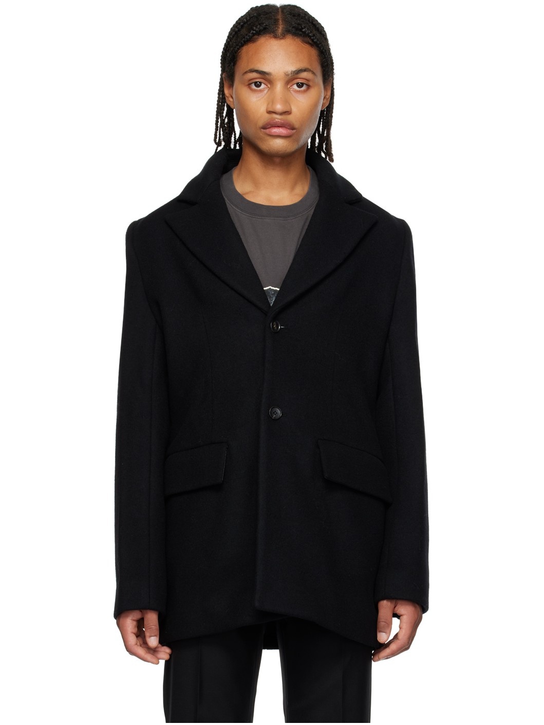 Wool-blend melton blazer. · Notched lapel · Two-button closure · Flap pockets · Darts at front and back · Three-button surgeon's cuffs · Welt pockets at interior · Full logo-woven satin lining Supplier color: Black Body: 73% wool, 22% nylon, 5% cashmere. Lining: 52% polyester, 48% rayon. Made in South Korea 232327M195003