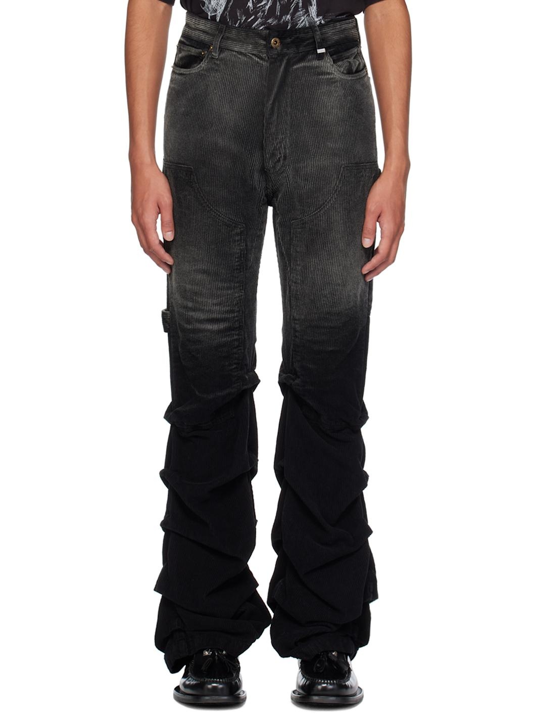 Cotton corduroy trousers. Gradient effect throughout. · Logo hardware at belt loops · Five-pocket styling · Zip-fly · Panel at knees · Ruching at legs · Patch pockets at outseams · Hammer loops at outseam · Logo patch at back waistband · Logo-engraved antiqued gold-tone hardware Supplier color: Black 100% cotton. Made in South Korea 242327M191003