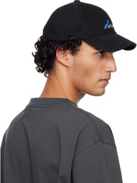 Cotton twill cap. · Embroidered eyelets at crown · Logo printed at face · Curved brim · Cinch fastening at back face · Grosgrain browband · Satin lining Supplier color: Black Body: 100% cotton. Lining: 50% polyester, 50% viscose. Made in South Korea 261327M139009