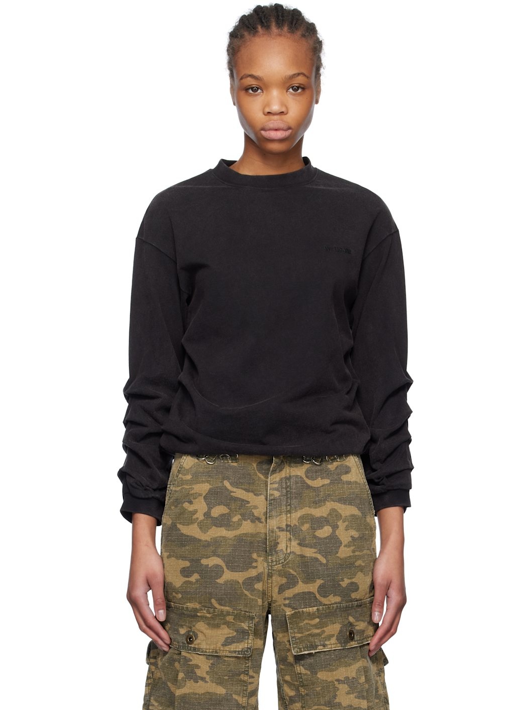 Cotton jersey T-shirt. Subtle fading throughout. · Rib-knit crewneck and cuffs · Logo embroidered at chest · Ruching at sides and cuffs Supplier color: Black 100% cotton. Made in South Korea 251327F110007