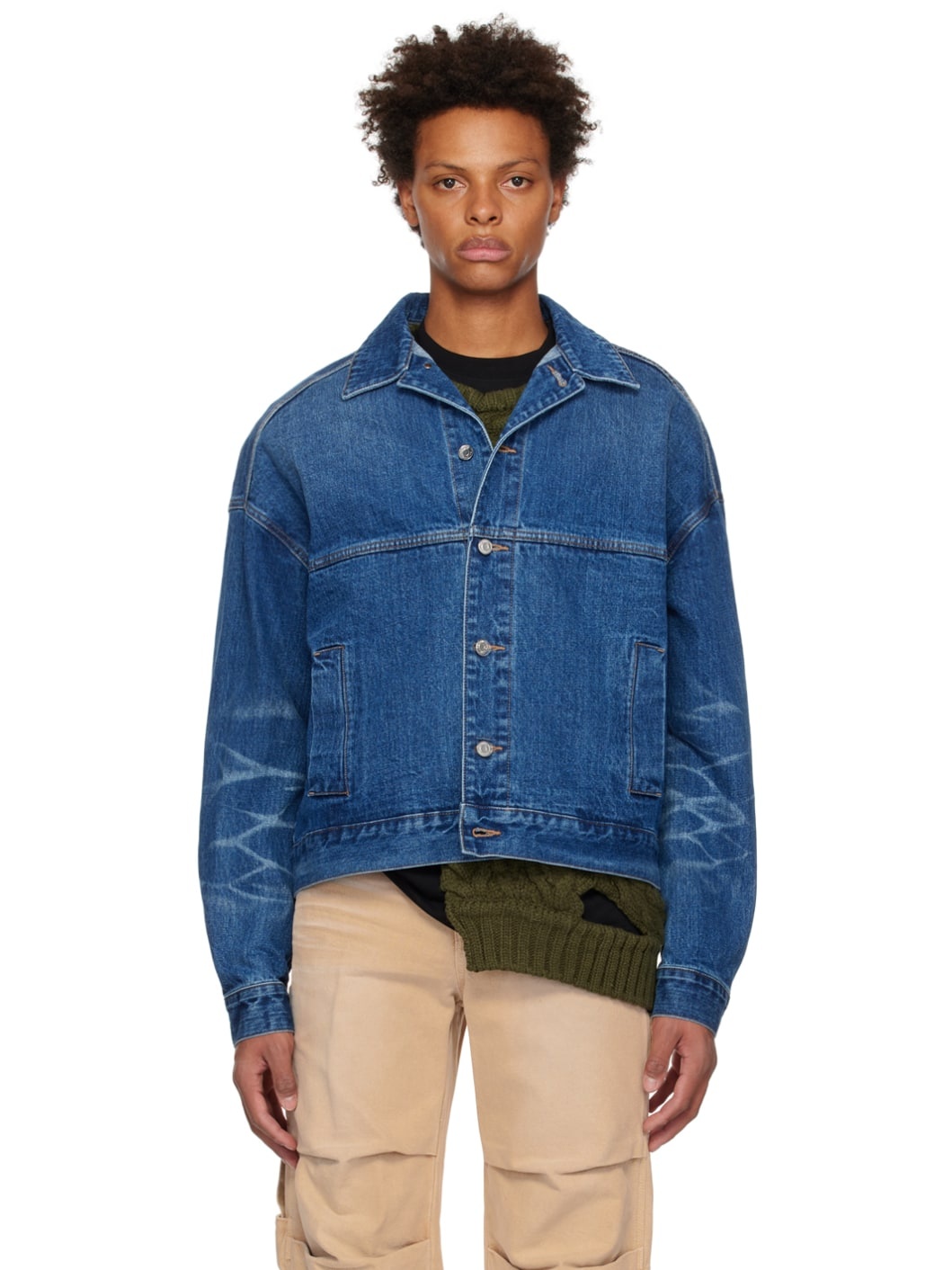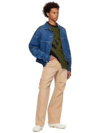 Non-stretch denim jacket. Fading and whiskering throughout · Spread collar · Button closure · Welt pockets · Single-button barrel cuffs · Logo printed at back · Logo-engraved silver-tone hardware · Contrast stitching in tan Supplier color: Blue 100% cotton. Made in South Korea 222327M177012
