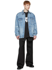 Non-stretch denim jacket. Whiskering, fading, and distressing throughout. · Spread collar · Button closure · Flap and welt pockets · Single-button barrel cuffs · Logo engraved silver-tone hardware Supplier color: Blue 100% cotton. Made in South Korea 221327M177010