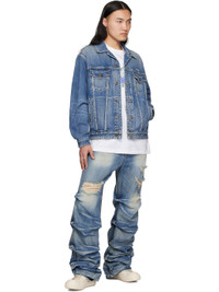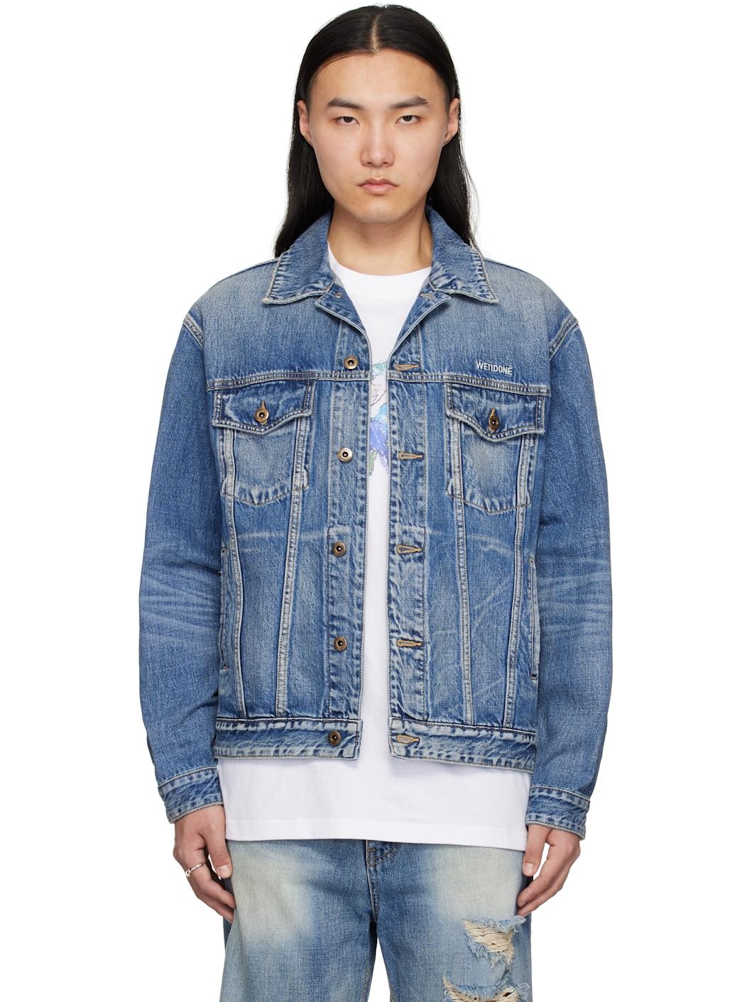 Non-stretch denim jacket. Fading, whiskering, and subtle distressing throughout. · Spread collar · Button closure · Logo embroidered at chest · Flap and welt pockets · Single-button barrel cuffs · Button tabs at back hem · Logo-engraved antiqued gold-tone hardware · Contrast stitching in beige Supplier color: Blue 100% cotton. Made in South Korea 251327M177000