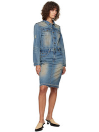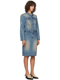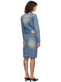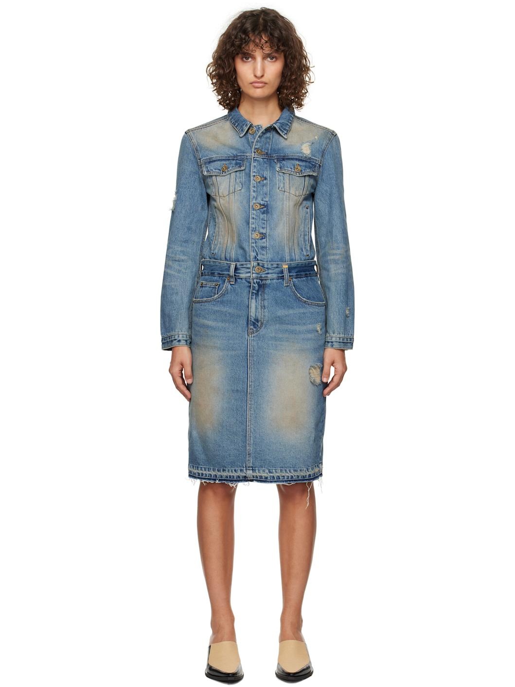 Non-stretch denim midi dress. Fading and distressing throughout. · Spread collar · Button closure · Flap pockets and welt pockets · Belt loops · Five-pocket styling · Zip-fly · Raw edge at hem · Single-button barrel cuffs · Logo patch at back waist · Central vent at back hem · Logo-engraved silver-tone hardware · Contrast stitching in tan Supplier color: Blue 100% cotton. Made in South Korea 242327F054002