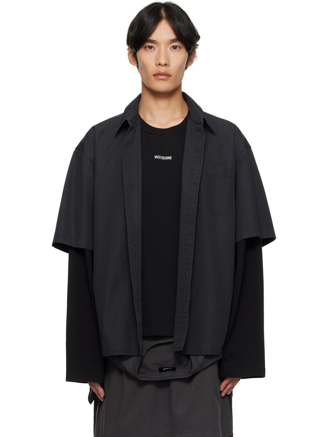 Cotton poplin shirt. · Cotton jersey T-shirt-style underlay · Spread collar · Button closure · Patch pocket at chest · Logo embroidered at underlay chest Supplier color: Charcoal Body 1: 100% cotton. Body 2: 100% cotton. Made in South Korea 252327M192003
