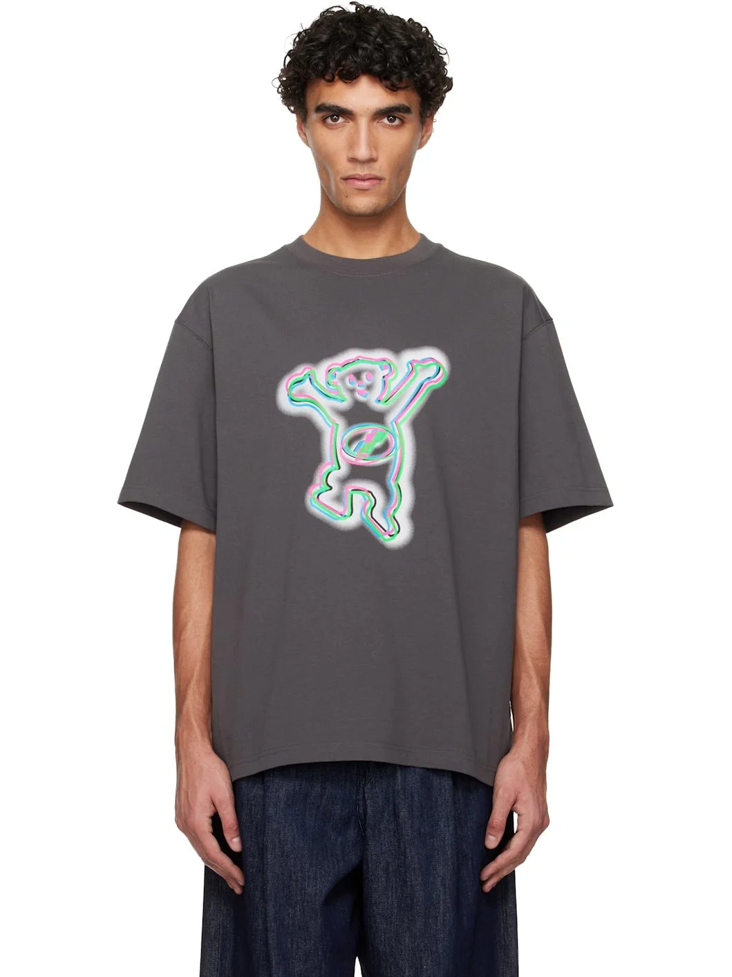 Cotton jersey T-shirt. · Oversized-fit · Rib-knit crewneck · Logo graphic printed at front and back · Rubber logo patch at back hem Supplier color: Charcoal 100% cotton. Made in South Korea 261327M213042