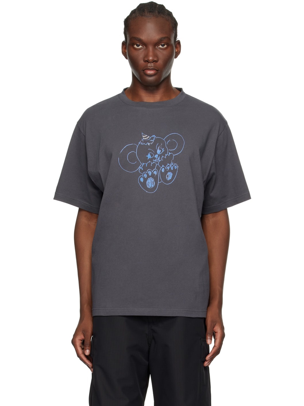 Cotton jersey T-shirt. · Rib knit crewneck · Crystal-cut appliques and printed graphic at front · Dropped shoulders Supplier color: Charcoal Body: 100% cotton. Trim: 96% cotton, 4% polyurethane. Made in South Korea 242327M213001