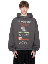 Gray Multi Logo Print Hoodie