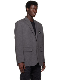 Stretch canvas blazer. · Notched lapel · Button closure · Welt pocket and rubberized logo patch at chest · Flap pockets · Padded shoulders · Surgeon's cuffs · Central vent at back hem · Welt pockets at interior · Full logo-woven satin lining Supplier color: Charcoal Body: 97% polyester, 3% polyurethane. Lining: 50% polyester, 50% viscose. Made in South Korea 252327M195002