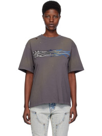Cotton jersey T-shirt. Fading, distressing, and paint splatter effect throughout. · Rib knit crewneck · Logo printed and embroidered at front · Dropped shoulders Supplier color: Charcoal 100% cotton. Made in South Korea 241327F110010