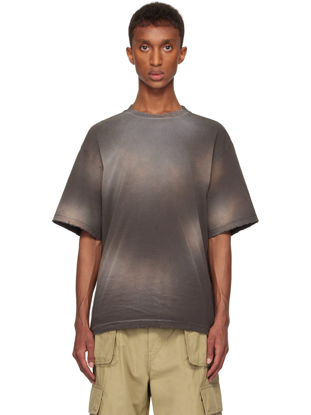 Washed cotton jersey T-shirt. Distressing and smudging throughout. · Rib-knit crewneck · Dropped shoulders · Embroidered logo at back hem Supplier color: Charcoal Body: 100% cotton. Trim: 95% cotton, 5% polyurethane. Made in South Korea 242327M213047