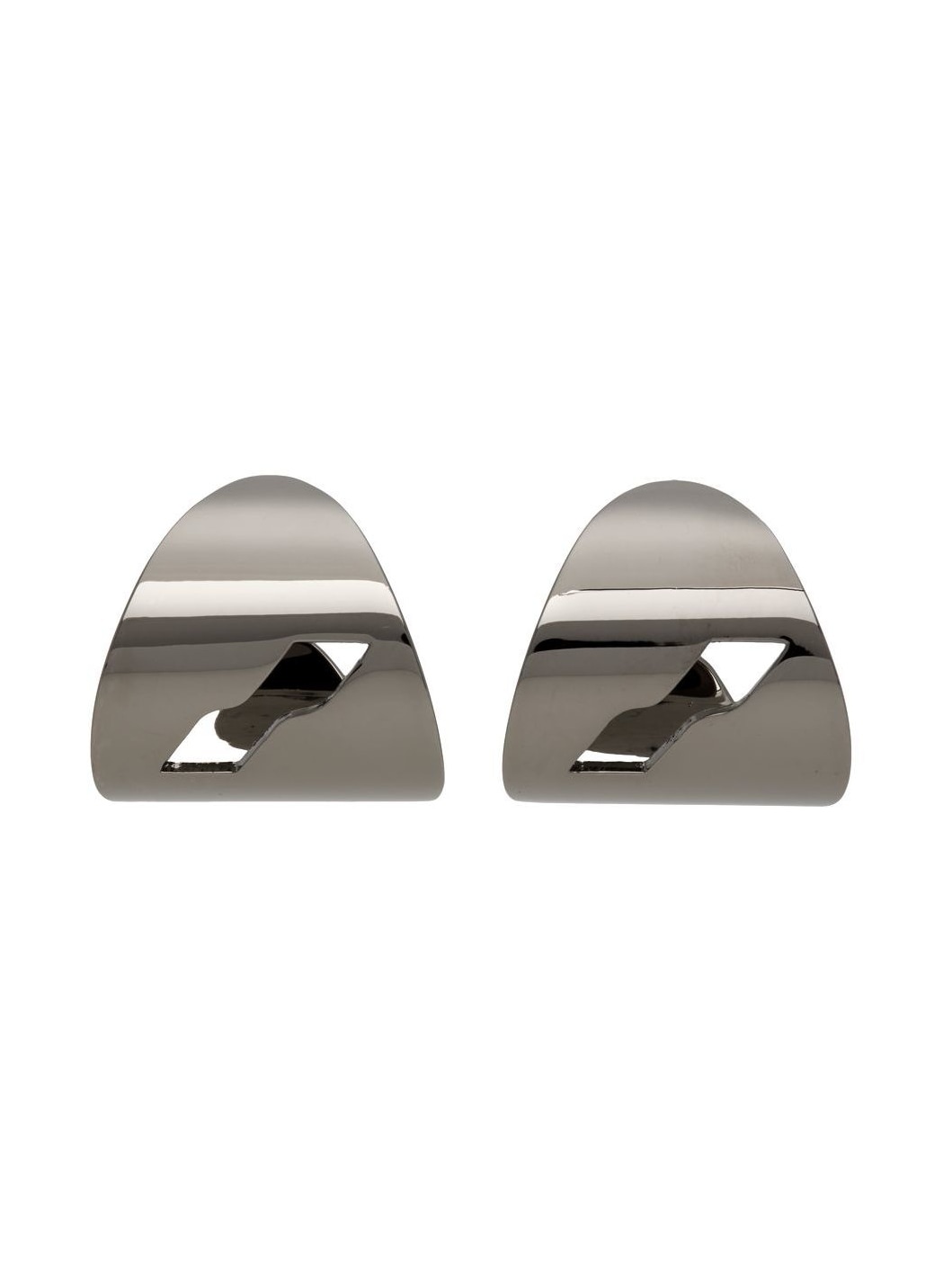 Pair of open hoop earrings in gunmetal-tone brass. · Cut-out logo at face · Post-stud fastening · D0.75 in Supplier color: Dark grey Brass. Made in South Korea 221327M144001