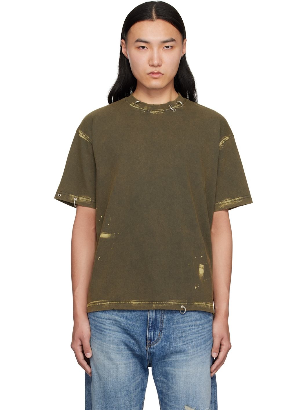 Cotton jersey T-shirt. Detachable O-rings at rib-knit crewneck, hem, and cuff. · Fading and printed splatter throughout · Dropped shoulders · Subtle distressing at hem and cuffs · Logo embroidered at back hem Each item is unique. Please note that finishings may vary. Supplier color: Charcoal Body: 100% cotton. Trim: 96% cotton, 4% polyurethane. Made in South Korea 251327M213008