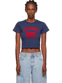 Cotton jersey T-shirt. · Crewneck · Logo graphic flocked at front · Cropped hem · Text flocked at back Supplier color: Navy 100% cotton. Made in South Korea 252327F110003