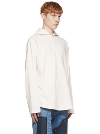 Cotton jersey henley. · Sailor collar · Concealed press-stud placket · Logo printed at front · Dropped shoulders · Rubberized logo patch at back collar Supplier color: Ivory Body: 100% cotton. Trim 1: 65% viscose, 35% nylon. Trim 2: 62% viscose, 38% polyester. Made in South Korea 221327M213062