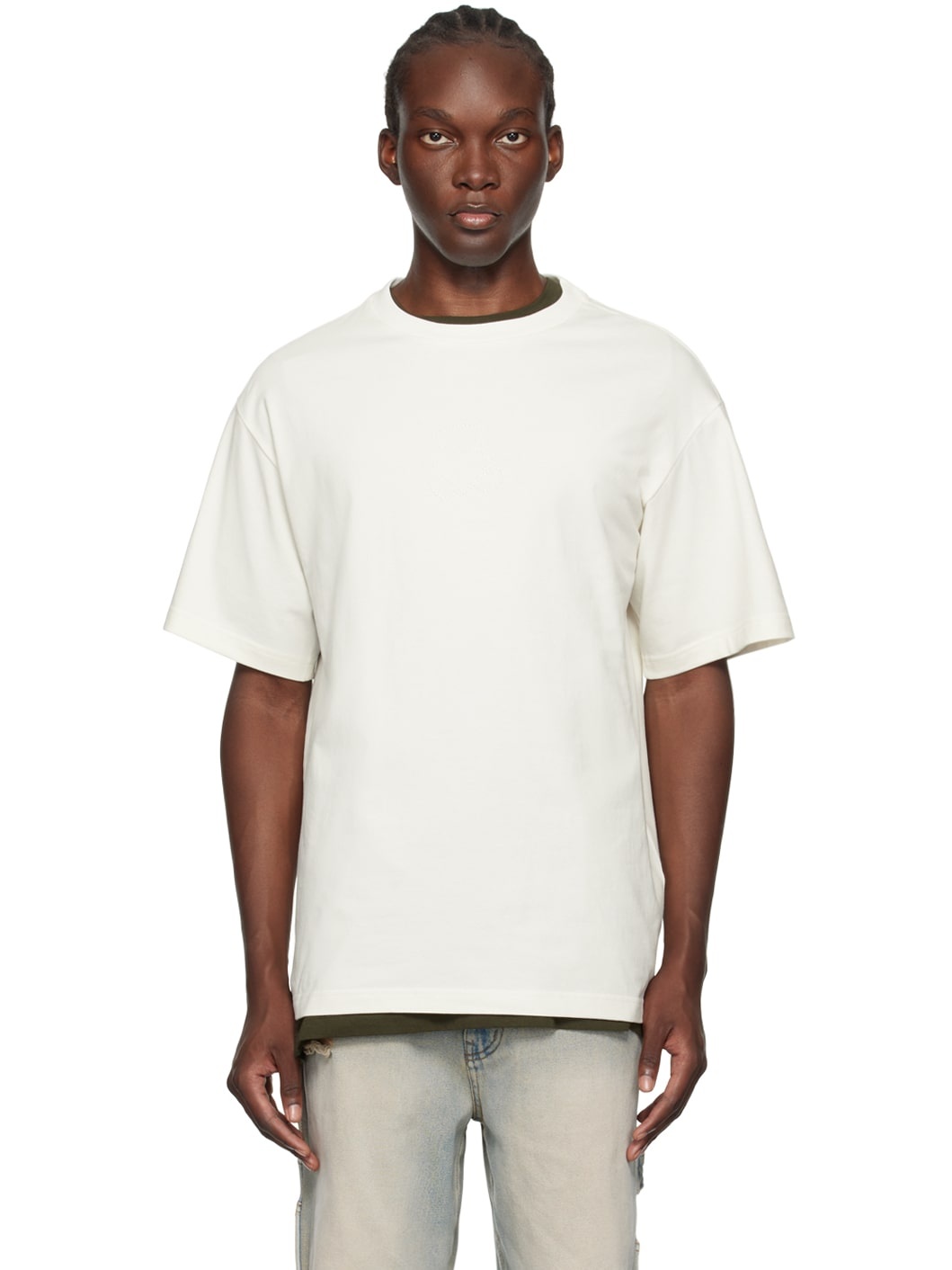 Stretch cotton jersey T-shirt. · Rib knit crewneck · Faux-pearl graphic at front · Dropped shoulders · Logo embroidered at back hem Supplier color: Ivory Body: 96% cotton, 4% polyurethane. Trim: 100% cotton. Made in South Korea 242327M213031