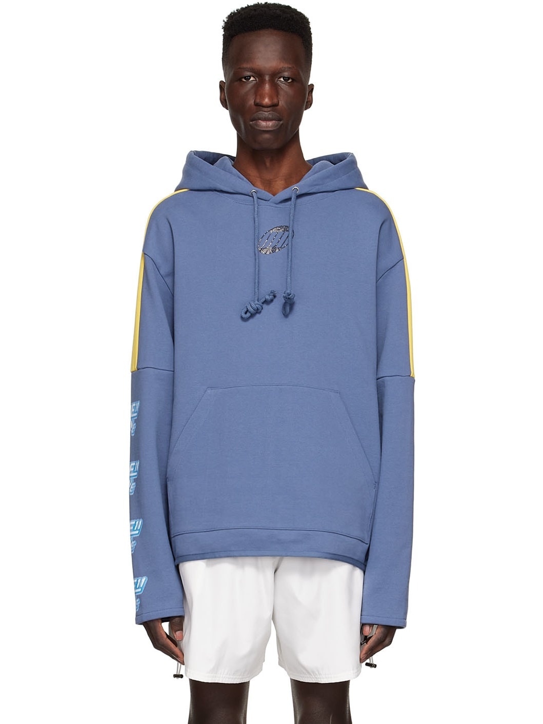 French terry hoodie. Paneled construction. · Drawstring at hood · Crystal-cut logo at chest · Kangaroo pocket · Logo bonded at sleeve Supplier color: Navy 100% cotton. Made in South Korea 221327M202036